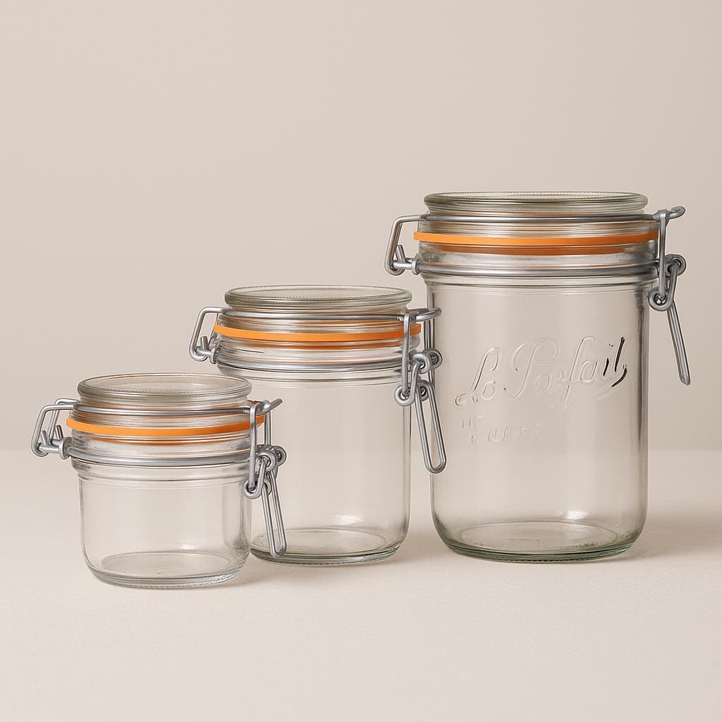 La serie "Super Terrine" de Le Parfait representa la auténtica artesanía francesa y ofrece una solución de alta calidad para la conservación y presentación de alimentos. Este clásico tarro de vidrio con cierre de alambre y el relieve "Le Parfait Super" ha sido diseñado específicamente como tarro invertido, lo que permite desmoldar fácilmente pasteles, tartas y otros postres. Además, es ideal para mermeladas, conservas de embutidos y carnes, así como una gran variedad de finos patés. Con una capacidad que va de 125 a 1000 ml, "Super Terrine" ofrece múltiples posibilidades de uso. La tapa de vidrio incluida y la característica junta de goma naranja garantizan un sellado seguro y hermético.
