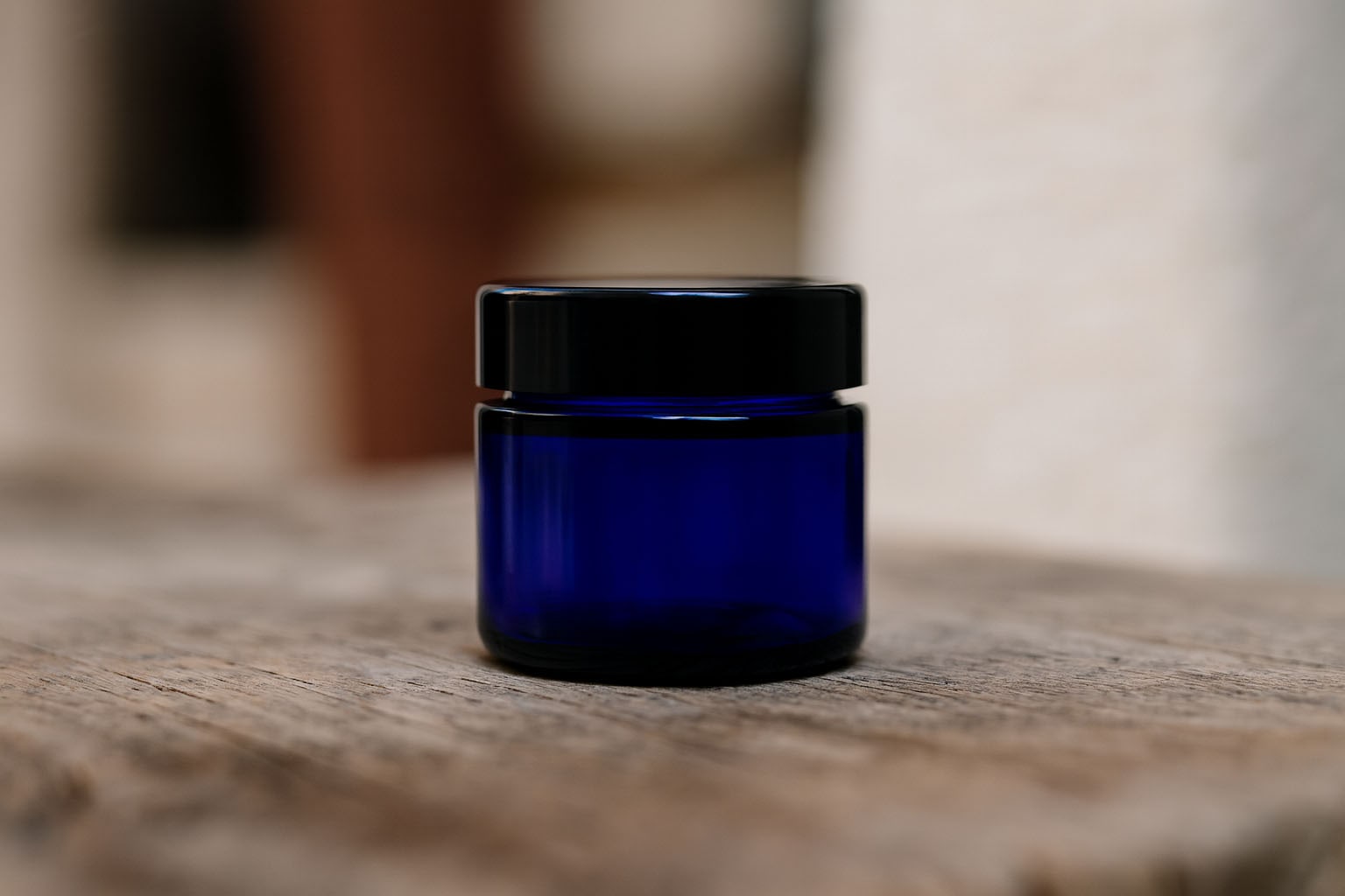 Botellas-y-Tarros 50 ml tarro 'Edición Azul', vidrio, azul real, boca: cierre de rosca