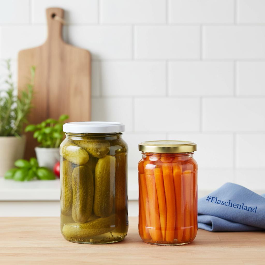 La serie de productos «Rundglas» de Flaschenland incluye tarros de conserva de alta calidad de 580 ml con cierre Twist-Off (TO 82), que se destacan por su versatilidad y resistencia técnica. La característica principal de estos recipientes de vidrio es su combinación de alta resistencia a la temperatura y manejo práctico. Estos recipientes están fabricados con vidrio resistente y ofrecen una capacidad de 580 ml. Son resistentes al frío, al calor, aptos para microondas, horno y lavavajillas, lo que permite un uso flexible en diferentes entornos. El cierre Twist-Off (TO 82) garantiza un sellado seguro y hermético, ideal para envasar y conservar alimentos como pepinillos, mermeladas u otras delicias caseras. Gracias a la combinación de un material robusto, es el tarro ideal para su cocina.