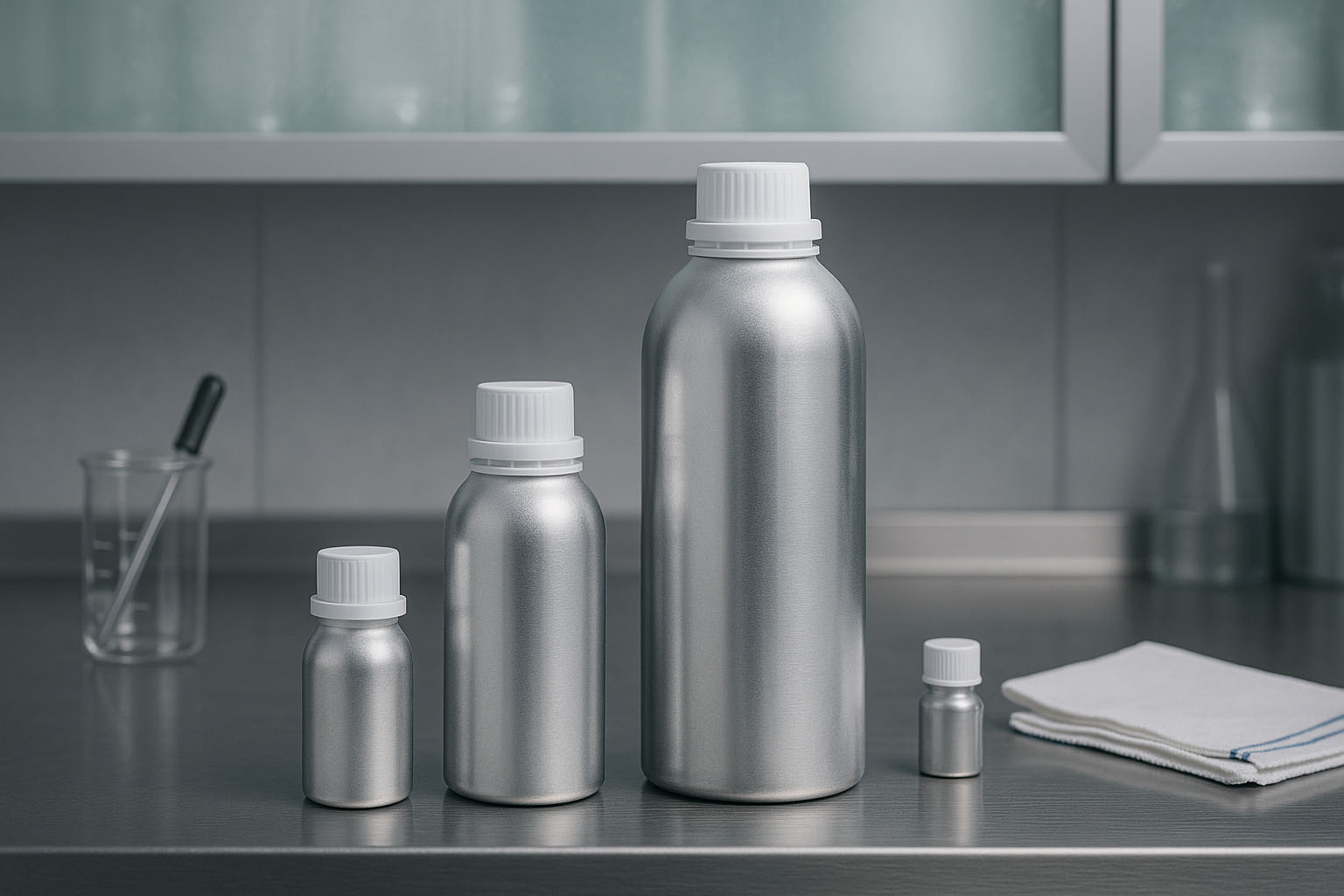 Estas botellas de aluminio de alta calidad son ideales para el almacenamiento y transporte seguro de productos químicos, disolventes, aceites esenciales y otros líquidos fotosensibles o peligrosos. Además, ofrecen una solución fiable para la conservación de muestras de referencia y garantizan una protección duradera de sustancias sensibles.