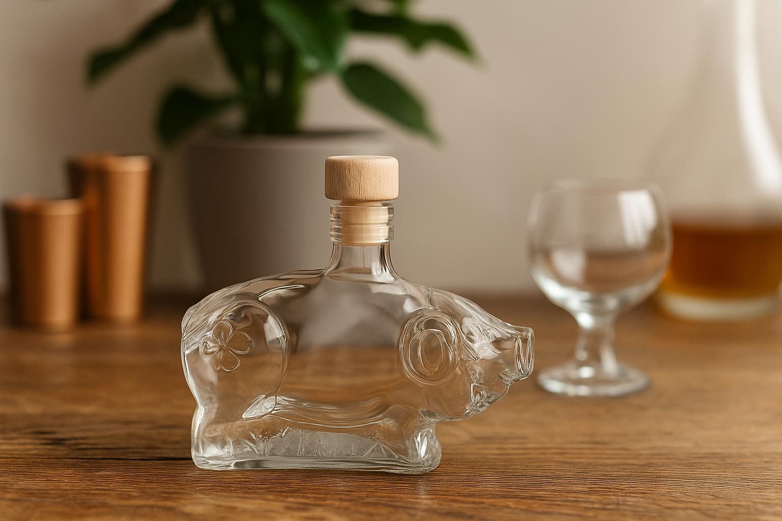 Botellas y tarros Botella de cristal de 200 ml 'Cerdito de la suerte', boca: corcho