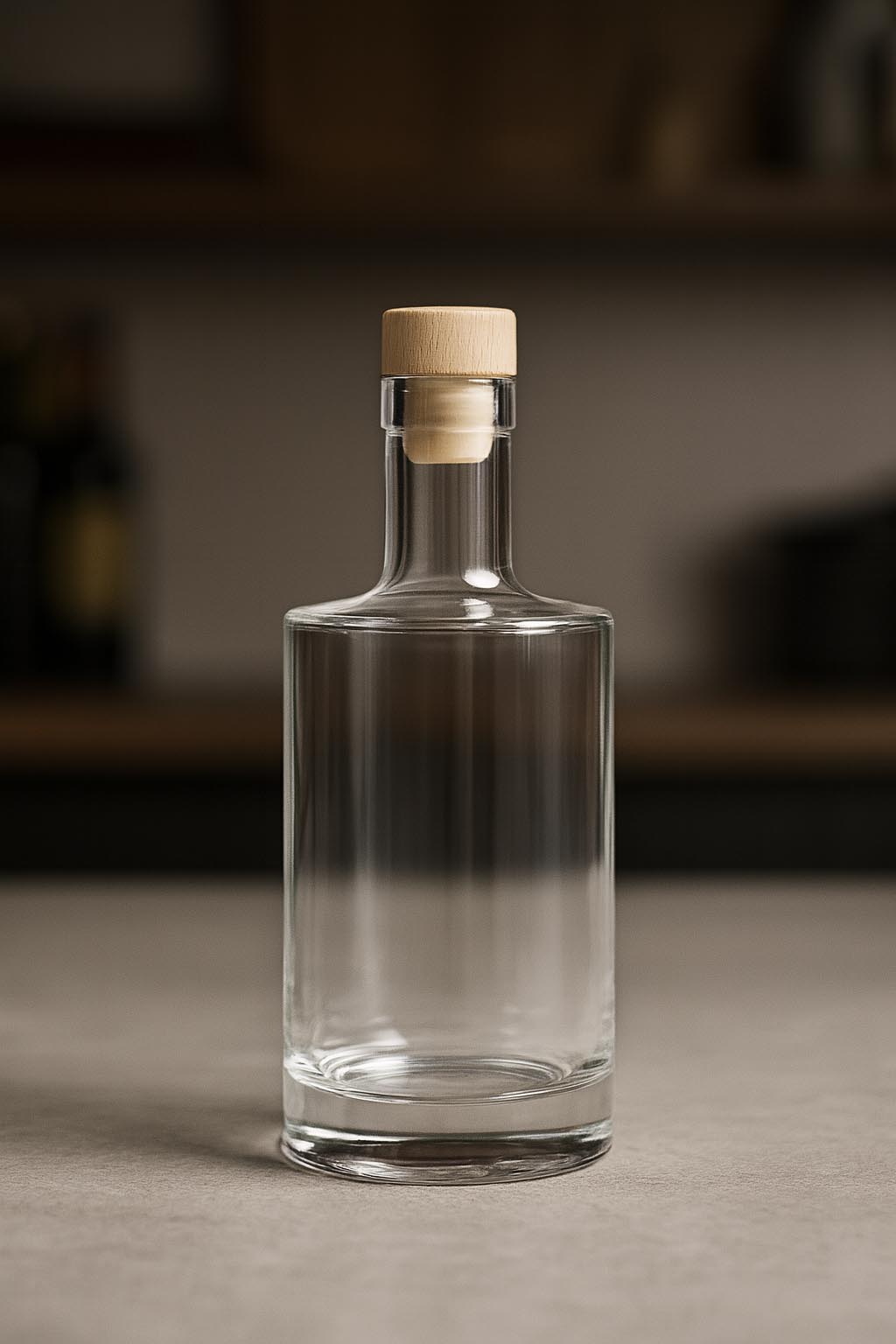 La serie "Homeland" representa una elegancia marcada y una fabricación de alta calidad. Esta exclusiva botella cilíndrica de vidrio transparente destaca por su base de vidrio de más de 2 cm de grosor, que no solo garantiza una estabilidad excepcional, sino que también aporta una impresionante profundidad óptica. Su forma robusta y a la vez estilizada convierte a "Homeland" en la elección perfecta para licores finos, aguardientes con carácter y otras bebidas de alta calidad. Gracias a las opciones flexibles de cierre —ya sea con corcho o con tapa GPI 28—, la botella se adapta a requisitos individuales. "Homeland" combina un diseño atemporal con una presencia fuerte y realza cada producto con estilo.