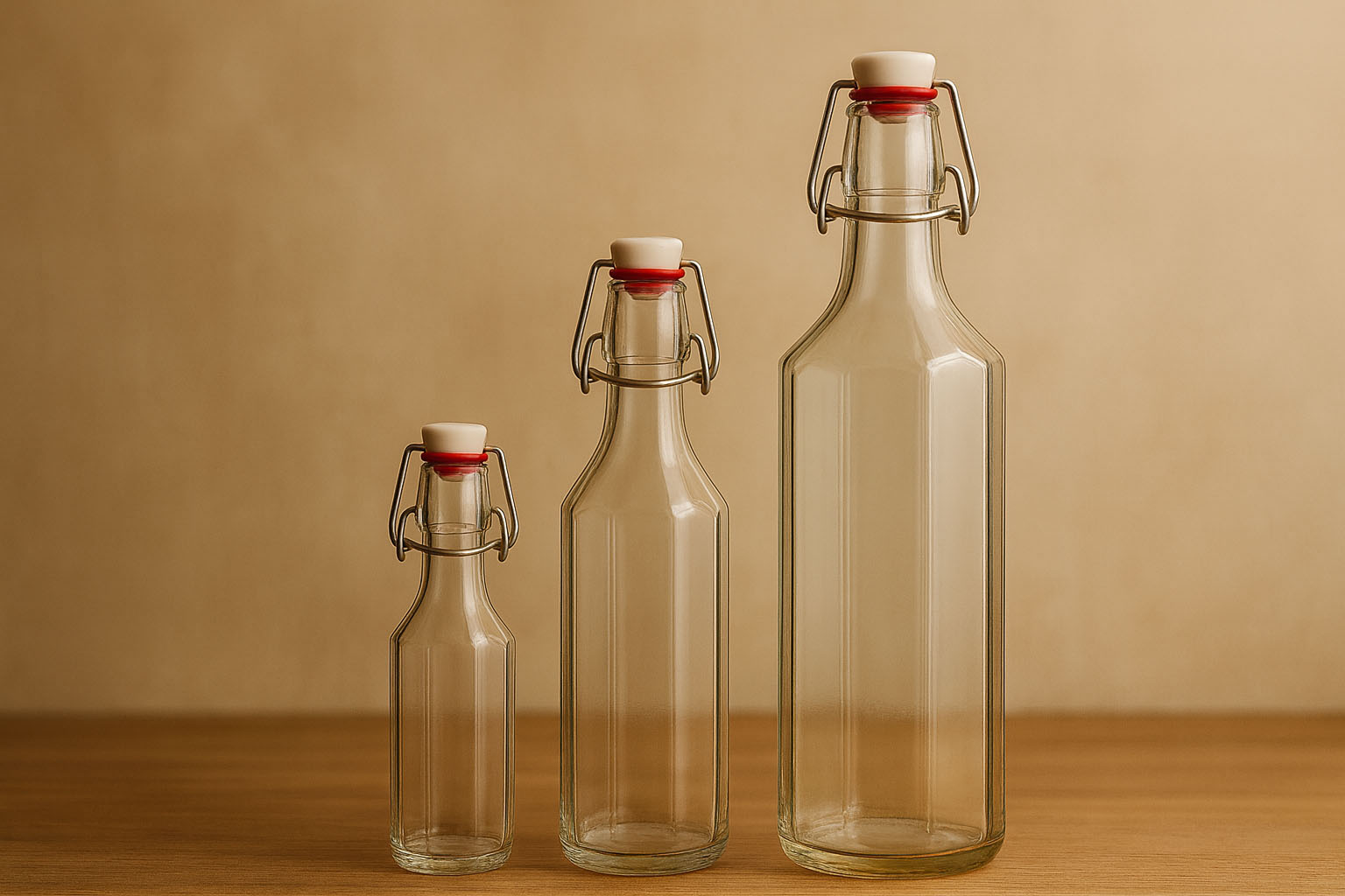 La serie „Bravo“ impresiona con su forma distintiva de diez lados, que combina elegancia y funcionalidad. Fabricada con vidrio transparente de alta calidad, esta botella excepcional presenta su contenido con estilo. Disponible en tamaños de volumen desde 250 hasta 1000 ml, „Bravo“ ofrece la solución perfecta para una amplia variedad de bebidas. Gracias a su práctico cierre de palanca, para el cual disponemos de cierres adecuados en nuestro catálogo, combina un sistema de cierre tradicional con una estética moderna.