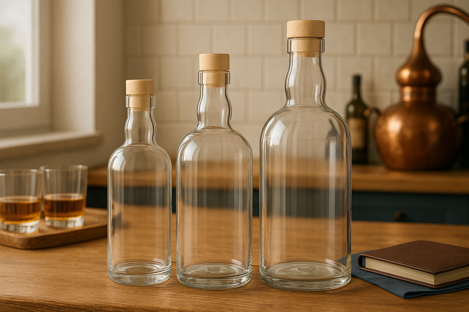 La colección «Aberdeen», fabricada en Europa, encarna una elegancia atemporal y una elaboración de alta calidad. Con su característico cuello ondulado y la posibilidad de cerrarla con un corcho, esta serie ofrece una solución elegante para el embotellado de whisky, coñac y otros licores finos.
