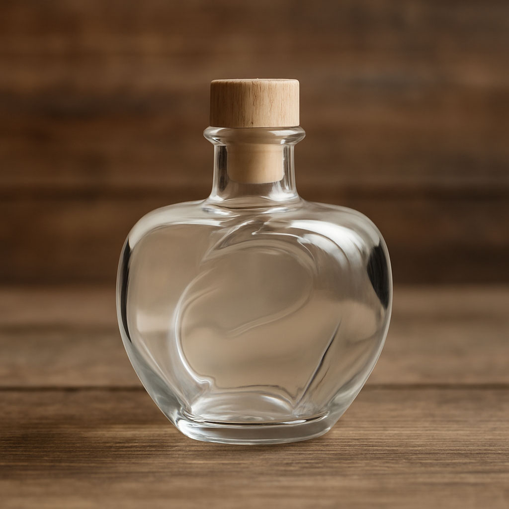 La botella con motivo "Manzana" cautiva con su diseño único en forma de manzana y es la elección perfecta para aguardientes y licores finos. Su diseño detallado en vidrio transparente de alta calidad resalta el carácter natural del contenido y la convierte en un auténtico punto de atracción. La boca con corcho garantiza un cierre elegante y seguro, mientras que su forma armoniosa enfatiza la calidad del producto.