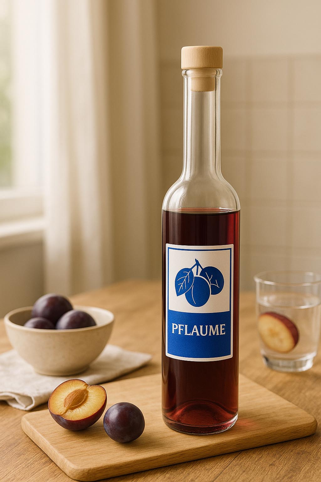 Botellas y tarros Botella de vidrio de 200 ml 'Opera', motivo: ciruela, boca: corcho
