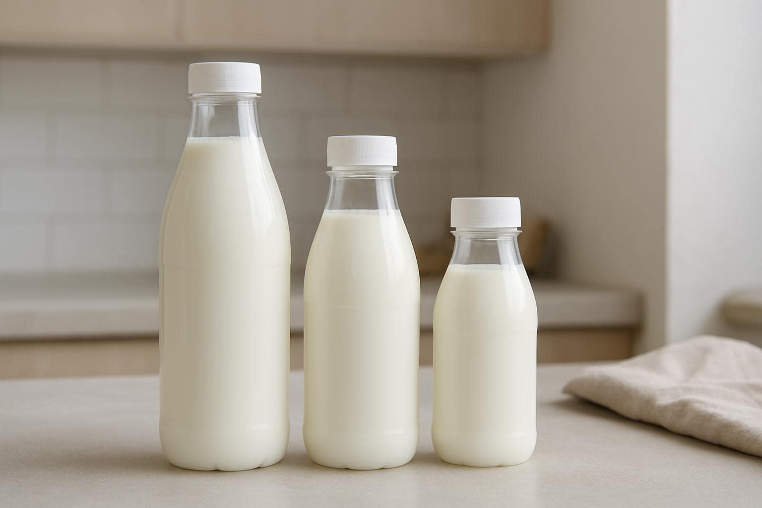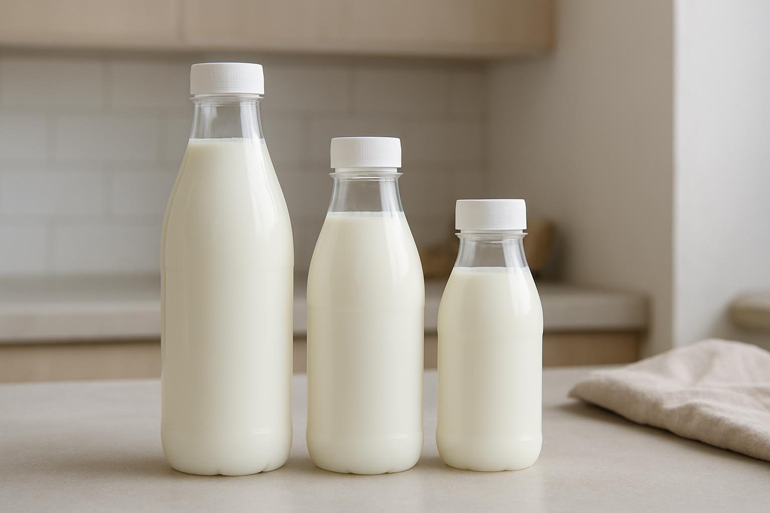 La serie "Milk and Juice" ofrece una solución de envasado funcional y versátil para alimentos y bebidas frescas. Estas botellas de cuello ancho de PET de alta calidad destacan por su amplia abertura, que facilita especialmente el llenado y el vertido. Disponibles en tamaños de 150 a 1000 ml, son ideales para el envasado de zumos, productos lácteos y otros alimentos líquidos. El material PET ligero y resistente garantiza una alta resistencia a roturas y un manejo sencillo en el día a día. Contamos con cierres adecuados en nuestro surtido, por lo que "Milk and Juice" ofrece una solución práctica, segura e higiénica para diversas aplicaciones.