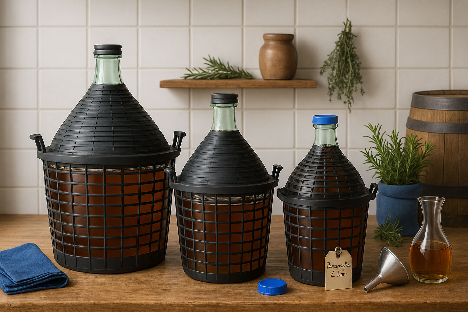 Las botellas balón son recipientes probados durante siglos para el almacenamiento y maduración de líquidos de alta calidad. Su característico cuello estrecho y la estructura robusta de vidrio las hacen ideales para la preparación y el almacenamiento de licores, bebidas espirituosas o bebidas caseras. La botella está protegida por una cesta de plástico resistente que facilita su manejo y proporciona mayor seguridad durante el transporte. Disponibles en tamaños de 10 a 54 litros y en colores de vidrio transparente y verde, las botellas balón ofrecen un entorno óptimo para la maduración y conservación de diversos productos de disfrute.