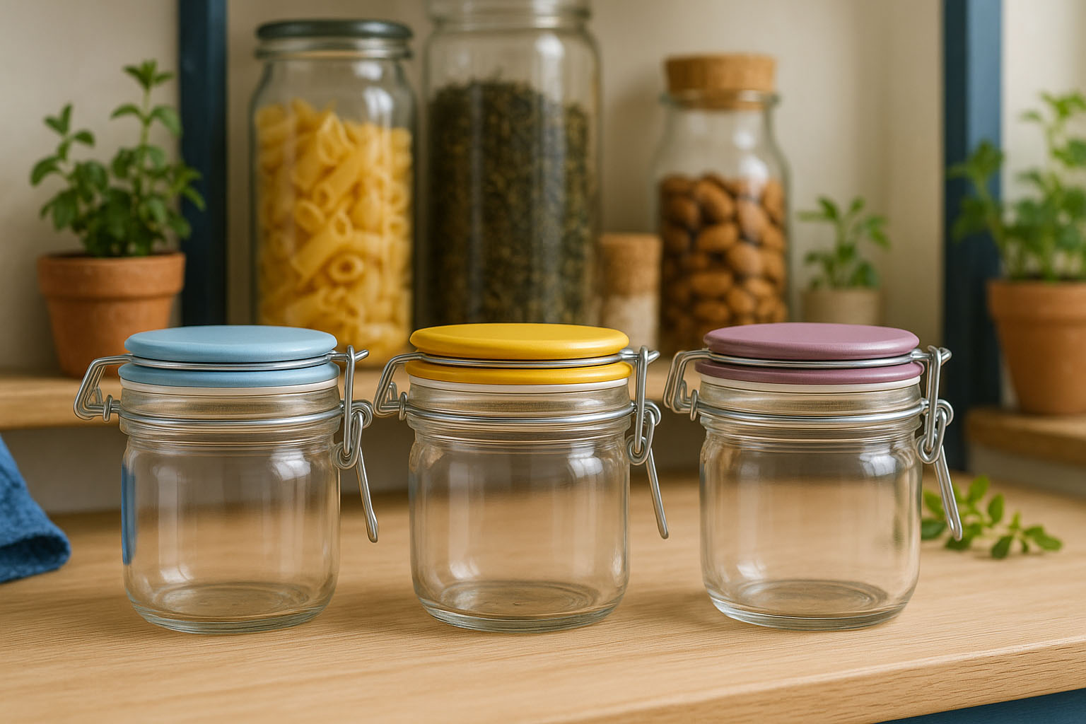 La serie «Fido» combina un diseño clásico con una funcionalidad versátil. Fabricado por el reconocido fabricante italiano Bormioli Rocco, este tarro con cierre de alambre destaca por su alta calidad y durabilidad. Cada tarro viene con un cierre de alambre resistente, una tapa de vidrio y una junta de goma, lo que garantiza un sellado hermético. Además, las tapas están disponibles en varios colores – azul, amarillo, verde, rosa y violeta – que aportan un toque personal a cada tarro.
